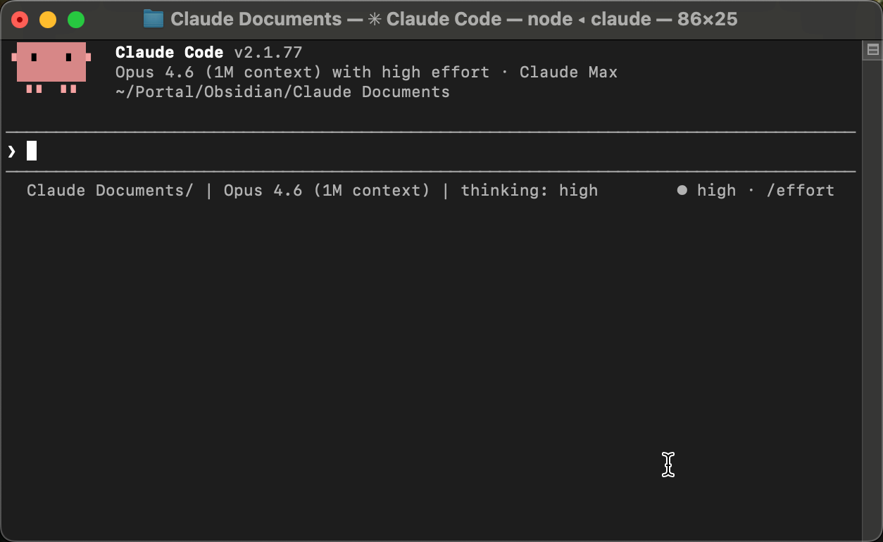Your terminal is now pointed at that folder. Type claude and hit Enter.