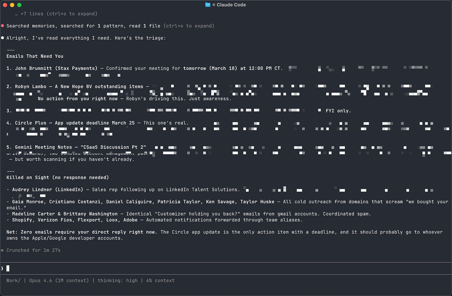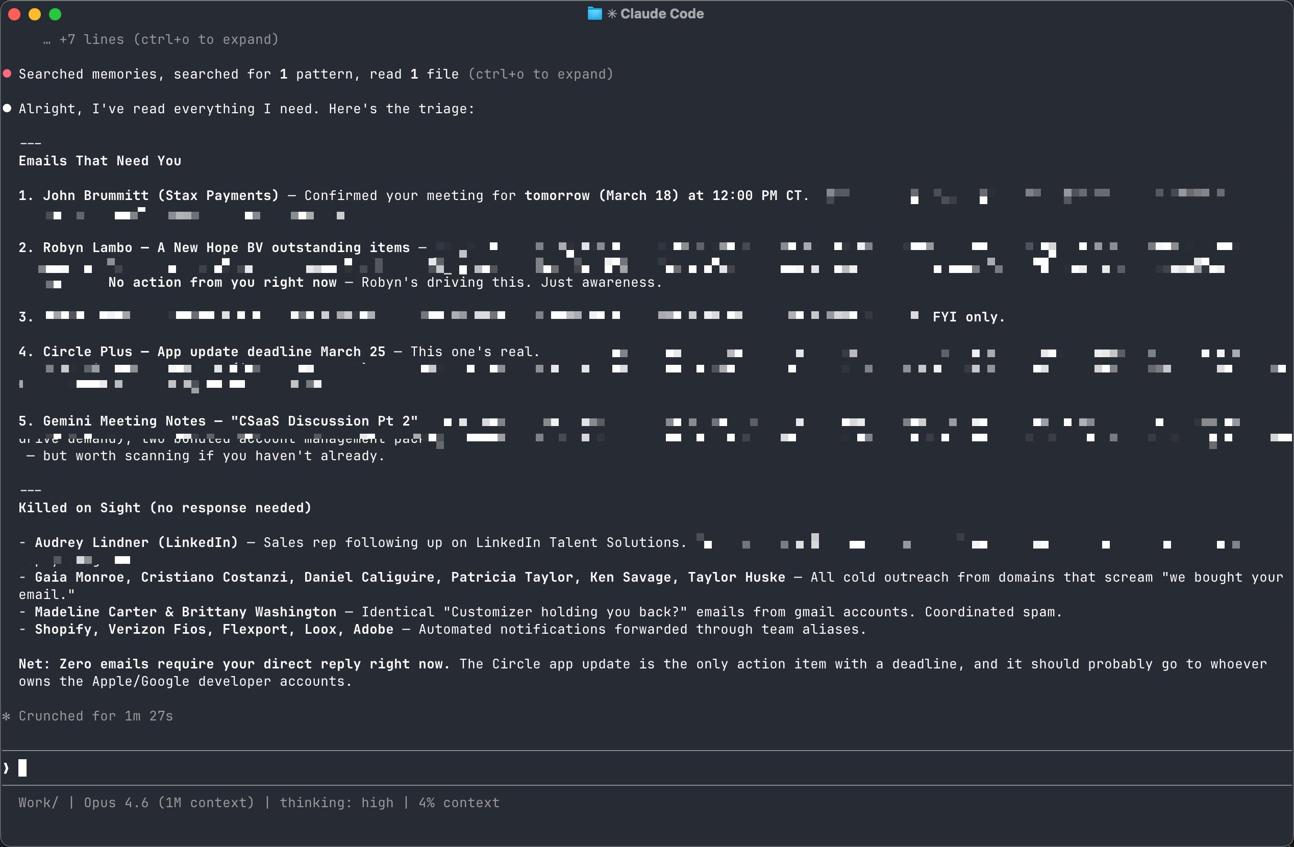 show me emails from real people that are waiting on me.And then watch Claude read your actual email.