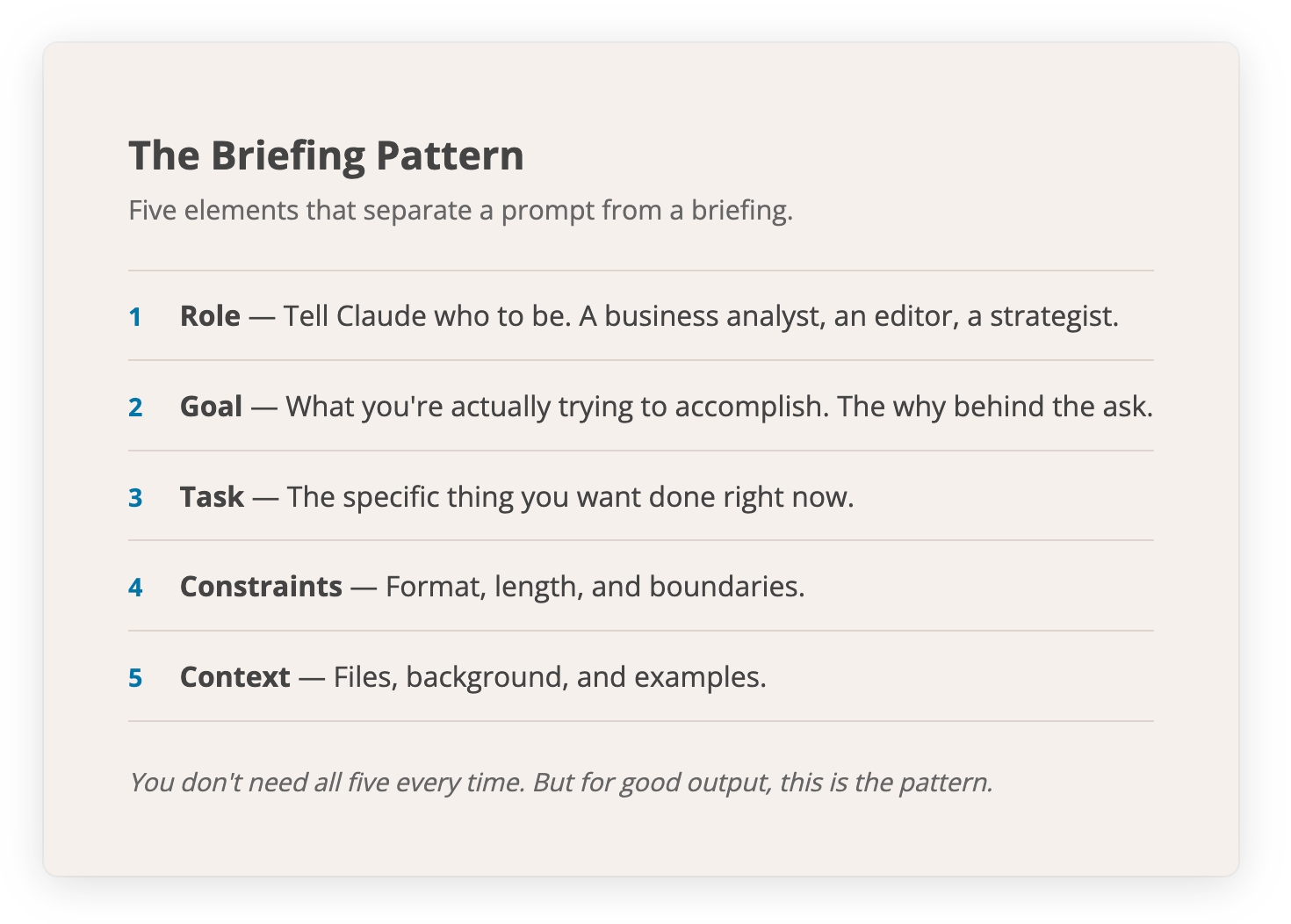 This is the mental model that separates people who try Claude Code and think it’s broken from people who use it every day and think it’s magic. And once someone shows you the pattern, you can learn it in ten minutes.