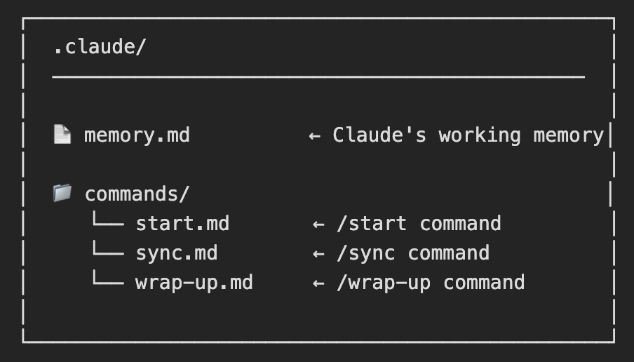 It’s simple. Two notes, two folders, one memory file, and three commands.