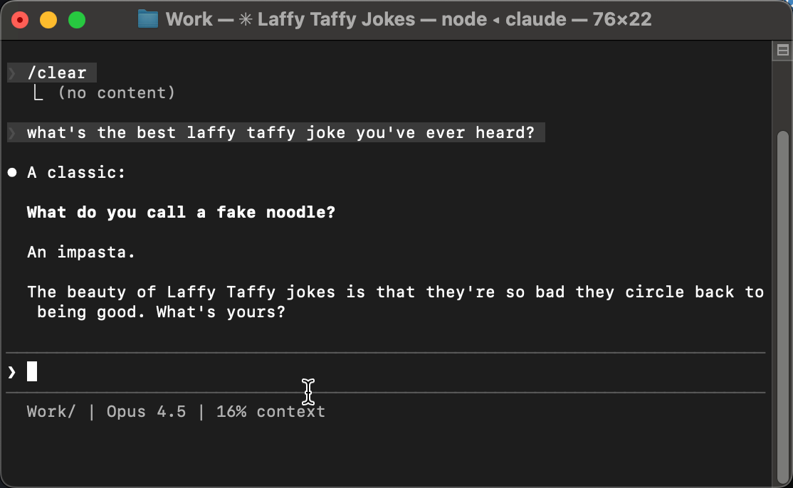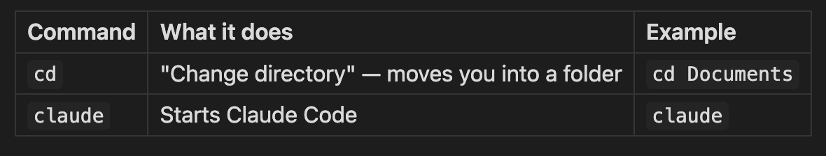 Before we set up commands, talk to it. This is the same Claude you’d use on claude.ai, you’re just talking to it in terminal instead of a chat window.