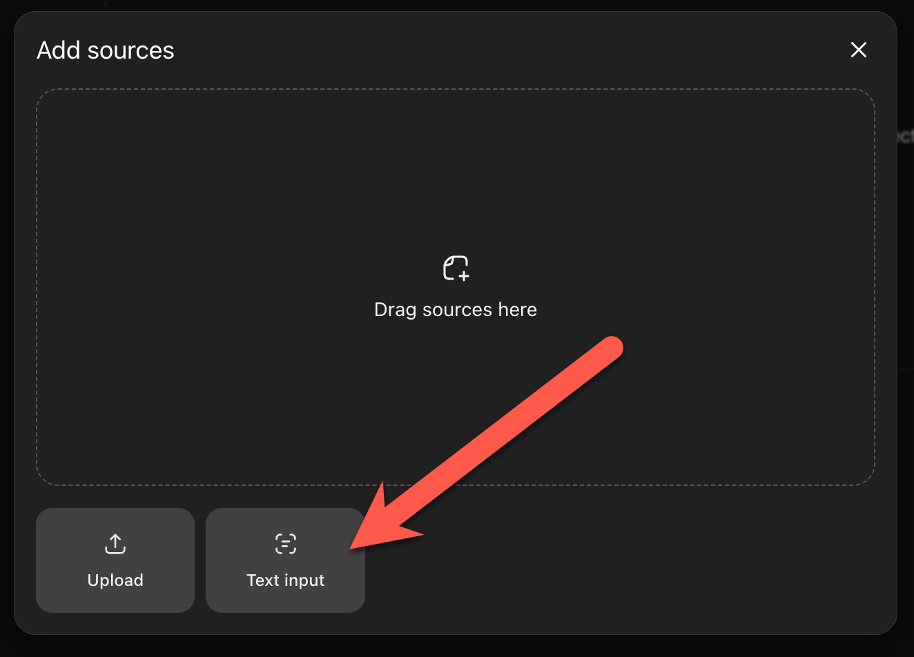 You’ll see a popup with two buttons: Upload and Text Input. Click Text Input.