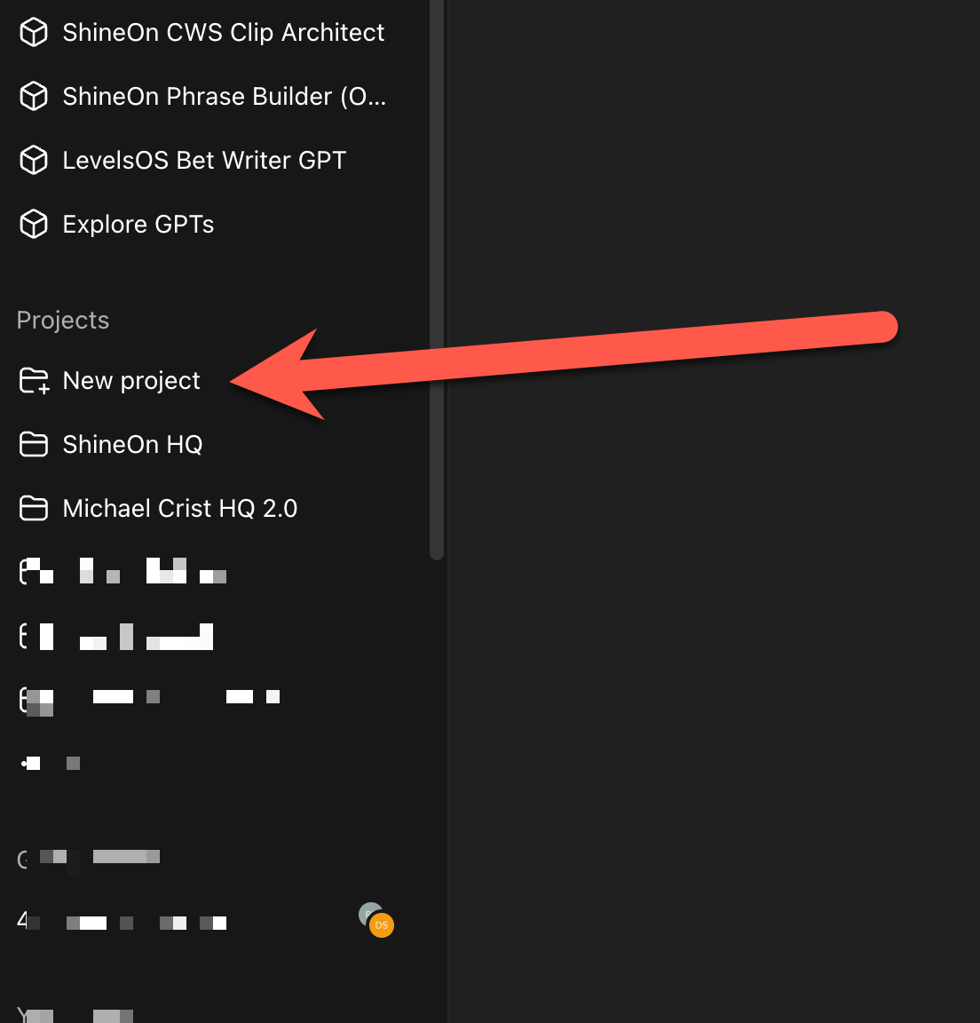 Open ChatGPT. On the left sidebar, click New Project.