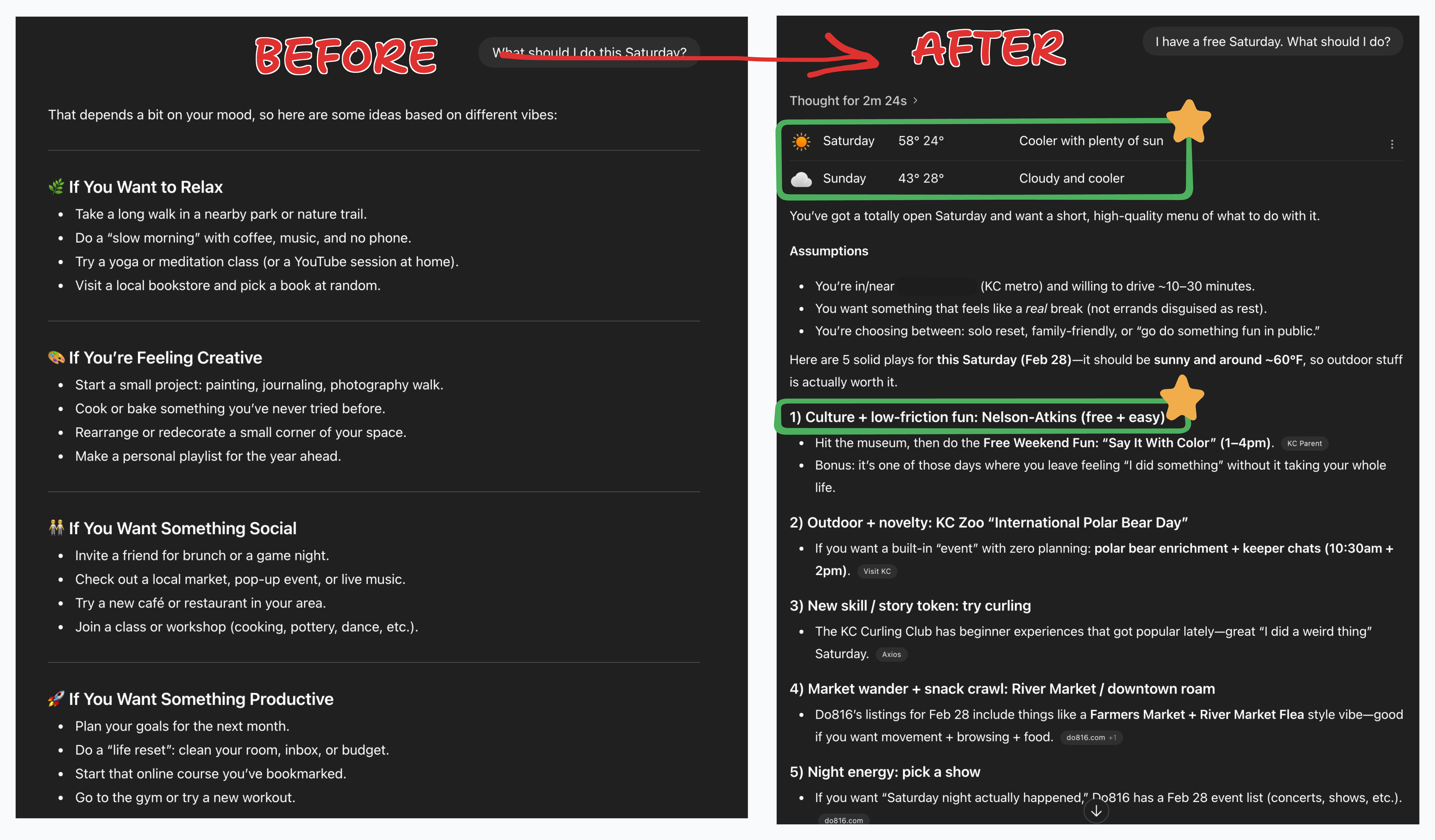 ChatGPT doesn’t do this out of the box. But I spent 15 minutes setting up one simple thing, and now it does it every time. I’m going to show you how today.